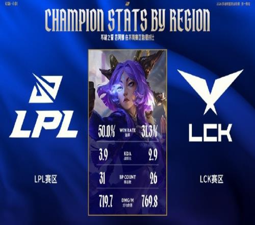 芸阿娜在LPL赛区与LCK赛区数据对比;