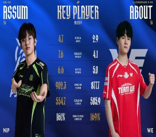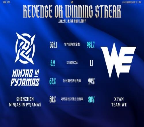 三日之后二度交锋,本场是什么剧本?NIP电子竞技俱乐部 与 WE电子竞技俱乐部 数据对比如下;