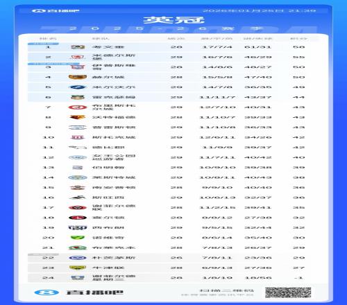 目前英冠积分榜↓