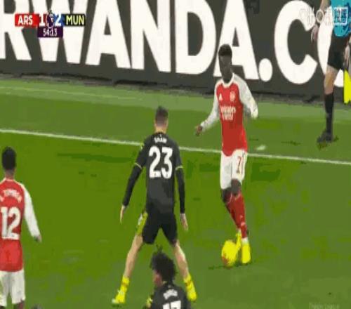 与阿森纳的比赛中卡塞米罗挡出萨卡内切后的射门