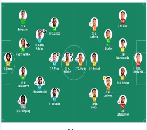 利物浦首发:1-阿利松、4-范戴克、26-罗伯逊、30-弗林蓬(4’3-远藤航)、8-索博斯洛伊(75‘65-纳洛)、10-麦卡利斯特、38-赫拉芬贝赫、7-维尔茨(67’42-尼奥尼)、11-萨拉赫、18-加克波(75’14-基耶萨)、22-埃基蒂克(67’73-恩古莫哈)。