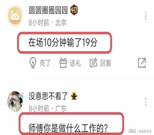 和许利民的“特别相信”范子铭不同,网友们可不惯着他,赛后纷纷吐槽道“在场10分钟输了19分。”;“师傅你是做什么工作的?”;“放个木桩子在篮下都比你有用。”;“也就许利民铁饭碗敢用你,换别的教练早把你坐穿板凳了”;“平均一场进两球,一赛季50多场,进一球拿五六万块。”;“这是顶薪球员的表现?下载个反 诈中心吧!”;“我姐上去,防守比你强一百倍,真的,不吹牛。”……